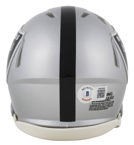 This Autographed Speed Mini Helmet has been Personally Signed by Michael Mayer of the Las Vegas Raiders. This item is 100% Authentic to include a hologram by Beckett Authentication Services. This item may come with the new Beckett Authentication hologram that has a scannable QR code rather than the traditional COA. If you would like to have a COA, you are welcome to reach out to Beckett for a printed certification once you receive your item. This is a BAS Witnessed Protection Program item which means a Beckett Authentication Service representative was present when this item was being signed. We conducted an autograph signing with Michael Mayer where multiples of the same item were signed. While the photographs are representative of this item, the size, placement and strength of the signature may vary. Each item is hand signed, therefore, each autograph is unique. This item can be verified through BAS Witnessed.