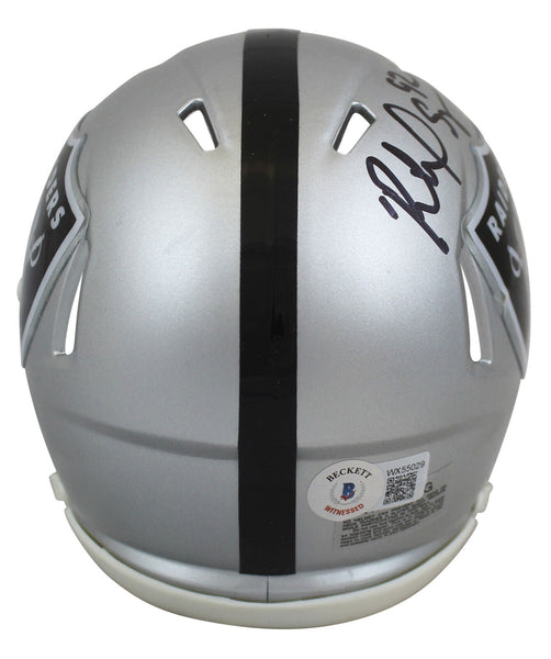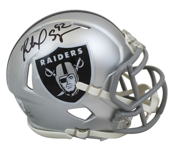 This Autographed Speed Mini Helmet has been Personally Signed by Richard Seymour of the Oakland Raiders. This item is 100% Authentic to include a hologram by Beckett Authentication Services. This item will come with the new Beckett Authentication hologram that has a scannable QR code rather than the traditional COA. If you would like to have a COA, you are welcome to reach out to Beckett for a printed certification once you receive your item. This is a BAS Witnessed Protection Program item which means a Beckett Authentication Service representative was present when this item was being signed. We conducted an autograph signing with Richard Seymour where multiples of the same item were signed. While the photographs are representative of this item, the size, placement and strength of the signature may vary. Each item is hand signed, therefore, each autograph is unique. This item can be verified through BAS Witnessed.