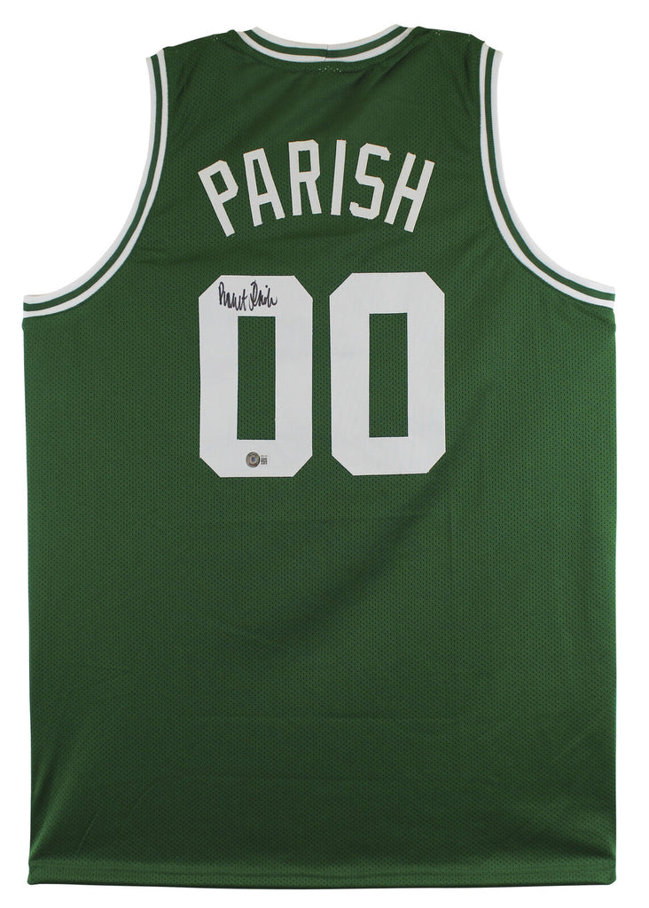 This Autographed Green Pro Style Jersey has been Personally Signed by Robert Parish of the Boston Celtics. This item is 100% Authentic to include a hologram by Beckett Authentication Services. This item may come with the new Beckett Authentication hologram that has a scannable QR code rather than the traditional COA. If you would like to have a COA, you are welcome to reach out to Beckett for a printed certification once you receive your item. This is a BAS Witnessed Protection Program item which means a Beckett Authentication Service representative was present when this item was being signed. We conducted an autograph signing with Robert Parish where multiples of the same item were signed. While the photographs are representative of this item, the size, placement and strength of the signature may vary. Each item is hand signed, therefore, each autograph is unique. This item can be verified through BAS Witnessed. This is a X-Large sized, non-branded, custom-stitched Jersey.