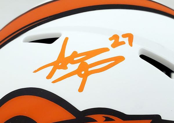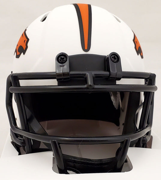 This is a Denver Broncos Lunar Eclipse White Speed Mini Helmet that has been hand signed by Steve Atwater. This item has been certified authentic by Beckett Authentication (BAS) and comes with their tamper-proof QR Code sticker that can be verified on the Beckett-authentication.com.