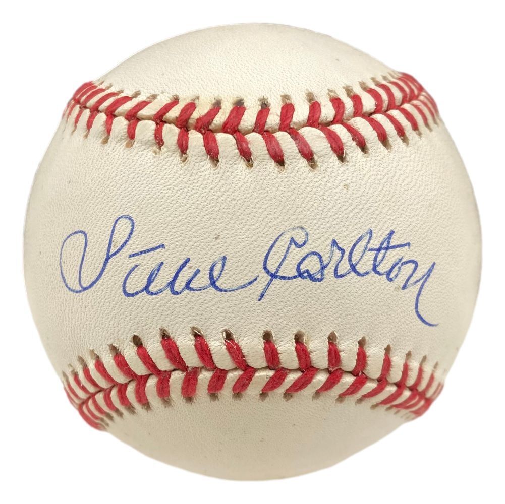 Featured is a Steve Carlton signed official National League baseball. This ball has been hand signed by Carlton and comes with the JSA hologram and certificate of authenticity. This ball would make a great addition to any sports memorabilia collection! SPECIFICATIONS Autographed By: Steve Carlton Team: Philadelphia Phillies Sport: Baseball Authentication: James Spence Authentication (JSA)