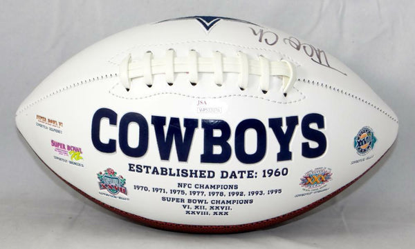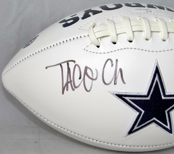 Taco Charlton Autographed Dallas Cowboys Logo Football JSA Witness Authenticated This is a Hand Autographed Football of Taco Charlton. This is a Dallas Cowboys Logo Football. This item has a James Spence Witness Authentication, which Comes with a JSA #'ed Sticker and a Matching JSA COA. You can view this item on the SpenceLOA website, it shows when and where the item was signed. It was signed either at a public autograph appearance or a Private Signing. This is a stock photo of the item. Although you may not receive this exact item, the item you receive is virtually identical and brand new in great shape.
