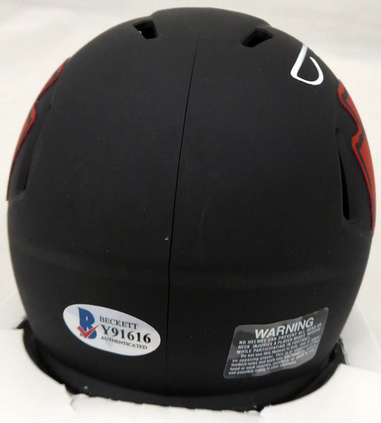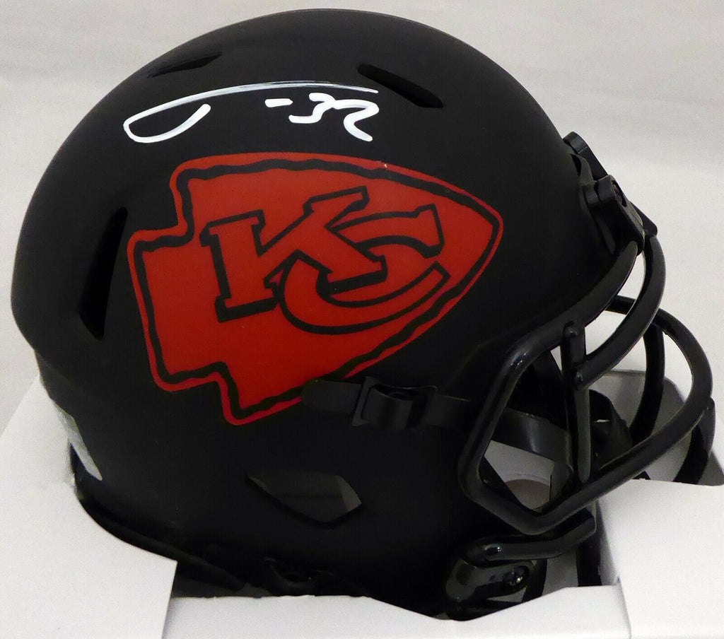 This is a Kansas City Chiefs Eclipse Black Speed Mini Helmet that has been hand signed by Tyrann Mathieu. This item has been certified authentic by Beckett Authentication (BAS) and comes with their sticker and matching certificate of authenticity. A A NOTE: The Eclipse Black helmets are very delicate and often have some marks or scratches on them.