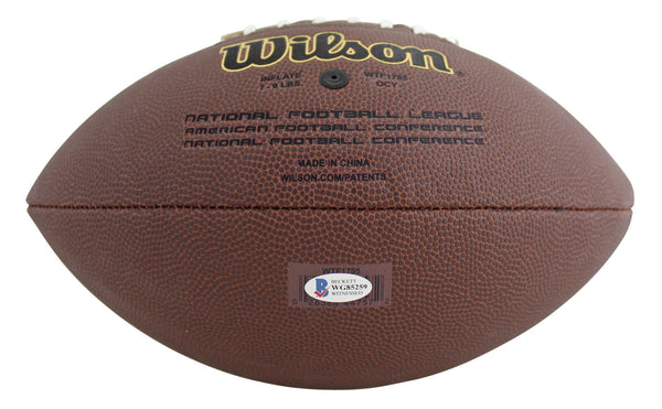 This Autographed Wilson Super Grip Nfl Football has been Personally Signed by Daunte Culpepper of the Minnesota Vikings. This item is 100% Authentic to include a Certificate of Authenticity (COA) / hologram by Beckett Authentication Services. This is a BAS Witnessed Protection Program item which means a Beckett Authentication Service representative was present when this item was being signed. This is a stock item. We conducted an autograph signing with Daunte Culpepper and we have several of these available. The one you will receive will be of equal quality to the one pictured. This item can be verified through BAS Witnessed.
