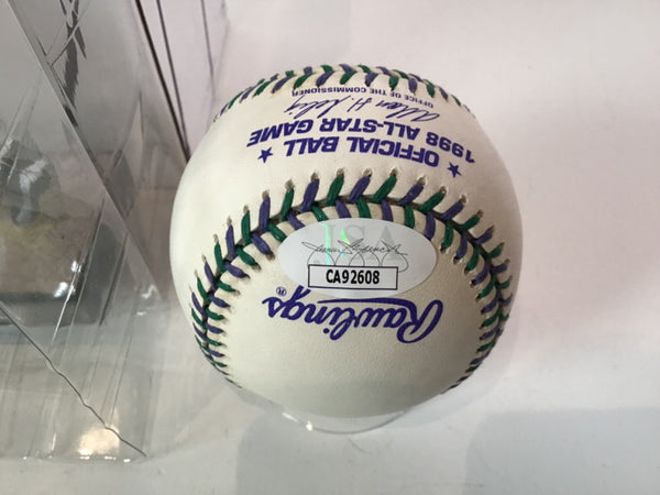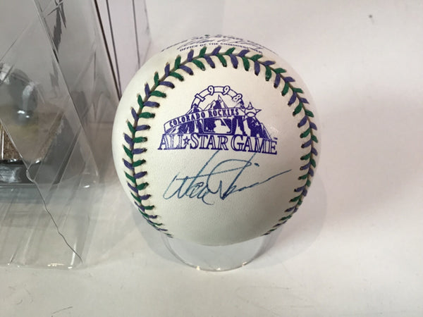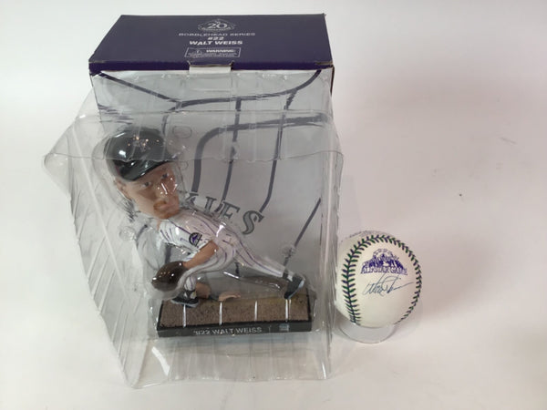 The product is a Walt Weiss autographed 1998 All Star Baseball JSA COA along with a Colorado Rockies 20th Anniversary bobblehead with original box. Both items are related to Major League Baseball and specifically the Colorado Rockies team. This unique memorabilia set would appeal to fans of baseball and collectors of sports memorabilia, offering a piece of history from a notable player and team in the MLB.