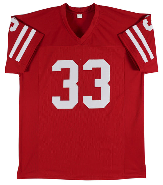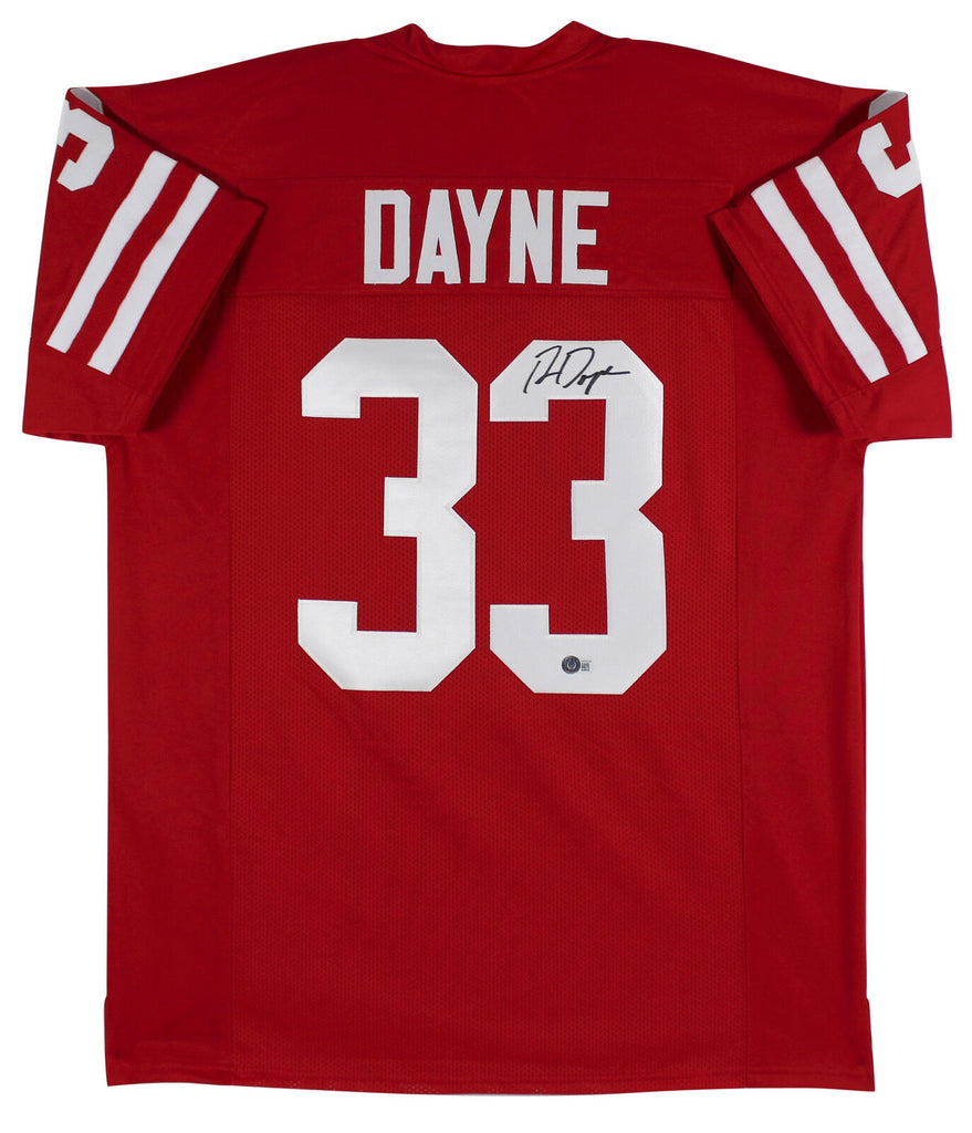 This Autographed Red Pro Style Jersey has been Personally Signed by Ron Dayne of the Wisconsin Badgers. This item is 100% Authentic to include a hologram by Beckett Authentication Services. This item will come with an affixed Beckett Authentication Services (BAS) authentication sticker, which includes a scannable QR code to verify authenticity. Please note that Beckett no longer provides serial-numbered COA cards, and the attached BAS sticker will serve as the complete authentication for this item. This is a BAS Witnessed Protection Program item which means a Beckett Authentication Service representative was present when this item was being signed. We conducted an autograph signing with Ron Dayne where multiples of the same item were signed. While the photographs are representative of this item, the size, placement and strength of the signature may vary. Each item is hand signed, therefore, each autograph is unique. This item can be verified through BAS Witnessed. This is a X-Large sized Jersey.