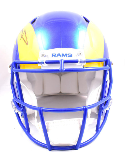 Aaron Donald Autographed Los Angeles Rams F/S Speed Authentic Helmet - Beckett W Hologram *Black This is a hand autograph of Aaron Donald of the Los Angeles Rams on a Riddell Football Full Size Speed Authentic Helmet. This item has a Beckett Witnessed Authentication, which comes with a numbered sticker and a QR code for verification. You can view this item on the Beckett Authentication website, it shows when and where the item was signed. It was signed either at a public autograph appearance or a private signing. This is a stock photo of the item. Although you may not receive this exact item, the item you receive is virtually identical and brand new in great shape.