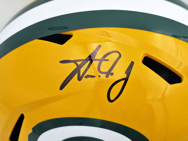 Aaron Jones Autographed Packers Yellow Full Size Helmet Beckett Witness 1W406046