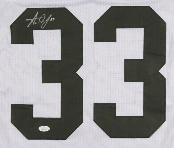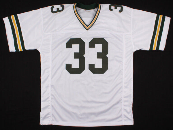 Custom on-field style jersey. Everything is sewn on, size XL. Hand-signed in silver paint pen by Aaron Jones. The lot / autograph(s) includes an official James Spence Authentication (JSA) hologram and matching COA for authenticity purposes. Authentication: JSA COACustom on-field style jerseys are a more affordable option for autograph seekers. These jerseys do not have any brand name or tags and are made in the Philippines. They feature stitched on names and numbers and are made to look very similar to the on-field jerseys that the players wear. These custom jerseys are very commonly used in the memorabilia industry.