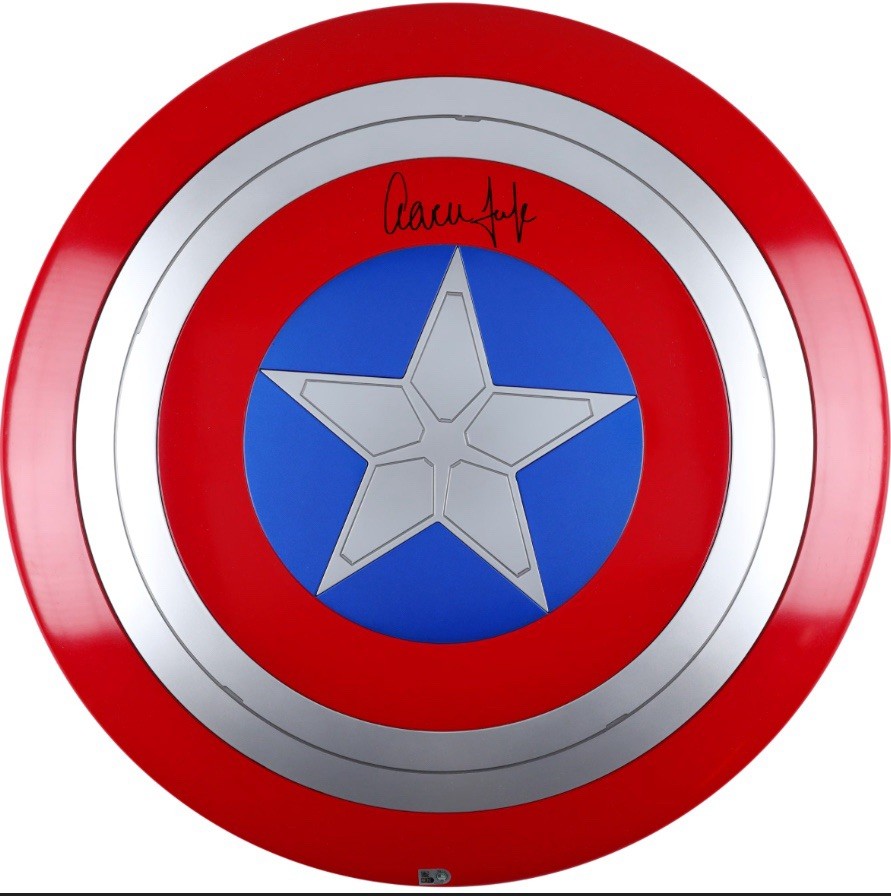 AMAZING Aaron Judge hand signed Captain America Replica shield from the Marvel movies. Judge hand signed the shield in bold black. Judge was recently named Team USA Captain for the 2026 World Baseball Classic. See all up close photos. Comes with original box! Diameter of shield is 2 feet. First image is a stock image... rest are of the actual item you will receive.