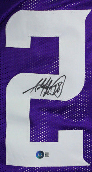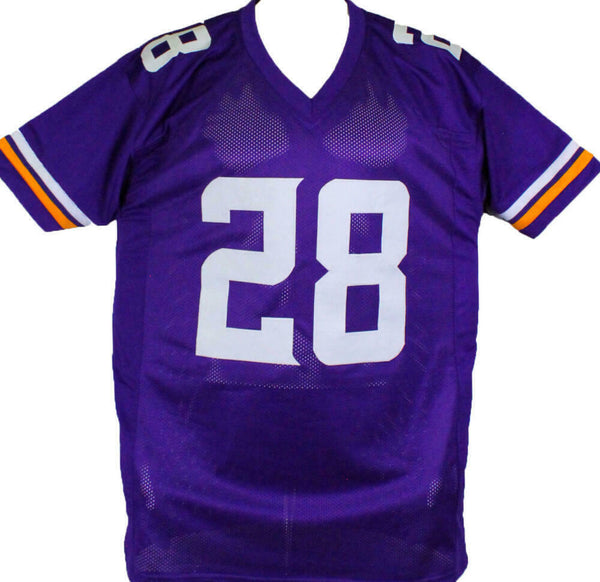 Adrian Peterson Autographed Purple Pro Style Jersey-Beckett W Hologram THIS IS NOT AN NFL JERSEY. THIS HAS NO TAGS, NO LOGOS, NO EMBLEMS. This is a hand autograph of Adrian Peterson on a Custom Made (non name brand) Authentic Style Jersey with stitched letters and numbers. This item has a Beckett Authentication, which comes with a numbered hologram and a generic Beckett Certificate of Authenticity. You can view this item on the Beckett Authentication website. It was signed either at a public autograph appearance or a private signing. This is a stock photo of the item. Although you may not receive this exact item, the item you receive is virtually identical and brand new in great shape. Jersey size is XL.