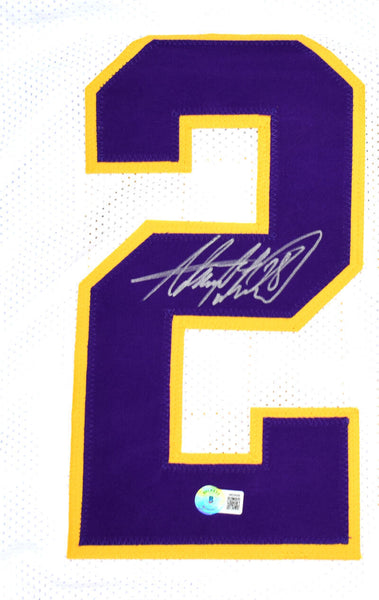 Adrian Peterson Autographed White Pro Style Stat Jersey- Beckett W Hologram *Silver THIS IS NOT AN NFL JERSEY. THIS HAS NO TAGS, NO LOGOS, NO EMBLEMS. This is a hand autograph of Adrian Peterson on a custom made (non name brand) authentic style stat jersey with stitched letters and numbers. This item has a Beckett Witnessed Authentication, which comes with a numbered hologram and a QR code for verification. You can view this item on the Beckett Authentication website. It was signed either at a public autograph appearance or a private signing. This is a stock photo of the item. Although you may not receive this exact item, the item you receive is virtually identical, brand new, and in great shape. Jersey size is XL.