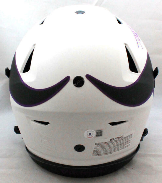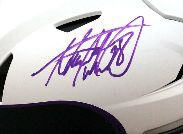 Adrian Peterson Autographed Minnesota Vikings F/S Lunar SpeedFlex Helmet- Beckett W Hologram This is a hand autograph of Adrian Peterson of the Minnesota Vikings on a Riddell Football Full Size Lunar SpeedFlex Authentic Helmet. This item has a Beckett Authentication, which comes with a Beckett numbered sticker hologram and a generic Certificate of Authenticity. You can view this item on the Beckett Authentication website and it shows when and where the item was signed. It was signed either at a public autograph appearance or a private signing. This is a stock photo of the item. Although you may not receive this exact item, the item you receive is virtually identical and brand new in great shape.