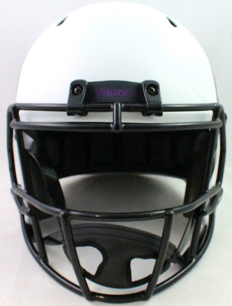 Adrian Peterson Signed Minn Vikings Lunar Speed F/S Helmet- Beckett W *Purple This is an Adrian Peterson of the Minnesota Vikings hand autographed Riddell Lunar Speed full size helmet. It has a Beckett Witnessed Authentication, which comes with a Beckett numbered and a matching Beckett Certificate of Authenticity. You can view this item on the Beckett website and it shows when and where the item was signed. It was signed either at a public autograph appearance or a private signing. This is a stock photo of the item. Although you may not receive this exact item, the item you receive is virtually identical, brand new, and in great shape.