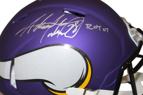 Adrian Peterson Signed Minnesota Vikings Authentic Speed Helmet ROY BAS 39014 The number in the listing title is just an inventory sku for our records and is not the authentication number. The item pictured is a stock photo unless otherwise noted. This is a Minnesota Vikings full size authentic speed helmet that was personally autographed by Adrian Peterson with ROY inscription. Includes a certificate of authenticity from Beckett Authentication Services (BAS) and Denver Autographs.