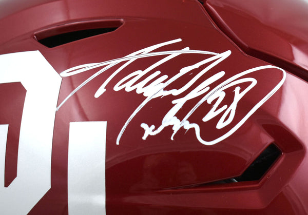 This is a Adrian Peterson of the Oklahoma Sooners Autographed Riddell football full size Speed Flex Authentic helmet. This item has a Beckett Witnessed Authentication, which comes with a numbered sticker hologram and a QR code for verification. You can view this item on the Beckett Authentication website and it shows when and where the item was signed. It was signed either at a public autograph appearance or a private signing. This is a stock photo of the item. Although you may not receive this exact item, the item you receive is virtually identical, brand new, and in great shape. *Autograph location may vary* This is a Adrian Peterson of the Oklahoma Sooners Autographed Riddell football full size Speed Flex Authentic helmet. This item has a Beckett Witnessed Authentication, which comes with a numbered sticker hologram and a QR code for verification. You can view this item on the Beckett Authentication website and it shows when and where the item was signed. It was signed either at a public autograph appearance or a private signing. This is a stock photo of the item. Although you may not receive this exact item, the item you receive is virtually identical, brand new, and in great shape. *Autograph location may vary*