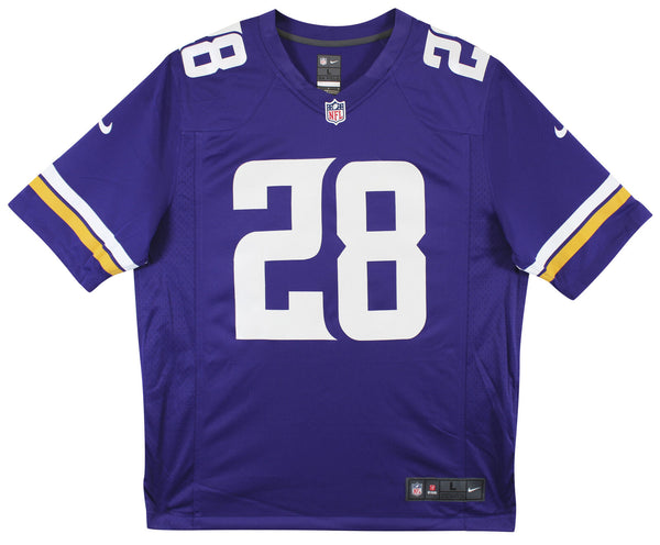 This Autographed Purple Nike Game Jersey with the inscription of "All Day" has been Personally Signed by Adrian Peterson of the Minnesota Vikings. This item is 100% Authentic to include a hologram by Beckett Authentication Services. This item will come with an affixed Beckett Authentication Services (BAS) authentication sticker, which includes a scannable QR code to verify authenticity. Please note that Beckett no longer provides serial-numbered COA cards, and the attached BAS sticker will serve as the complete authentication for this item. This is a BAS Witnessed Protection Program item which means a Beckett Authentication Service representative was present when this item was being signed. We conducted an autograph signing with Adrian Peterson where multiples of the same item were signed. While the photographs are representative of this item, the size, placement and strength of the signature may vary. Each item is hand signed, therefore, each autograph is unique. This item can be verified through BAS Witnessed. Multiple sizes available. Reach out for availability.