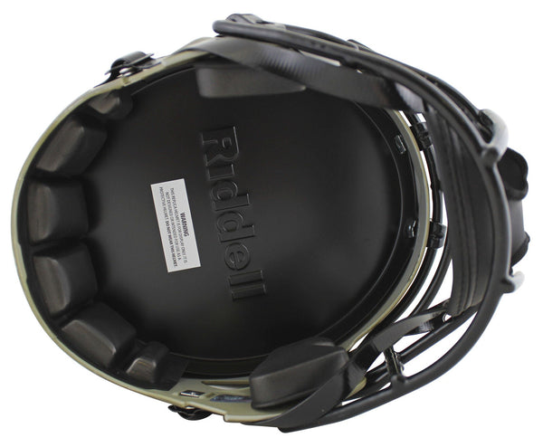 This Autographed Alternate Salute To Service Riddell Full Size Speed Rep Helmet has been Personally Signed by Adrian Peterson of the Minnesota Vikings. This item is 100% Authentic to include a hologram by Beckett Authentication Services. This item may come with the new Beckett Authentication hologram that has a scannable QR code rather than the traditional COA. If you would like to have a COA, you are welcome to reach out to Beckett for a printed certification once you receive your item. This is a BAS Witnessed Protection Program item which means a Beckett Authentication Service representative was present when this item was being signed. We conducted an autograph signing with Adrian Peterson where multiples of the same item were signed. While the photographs are representative of this item, the size, placement and strength of the signature may vary. Each item is hand signed, therefore, each autograph is unique. This item can be verified through BAS Witnessed.