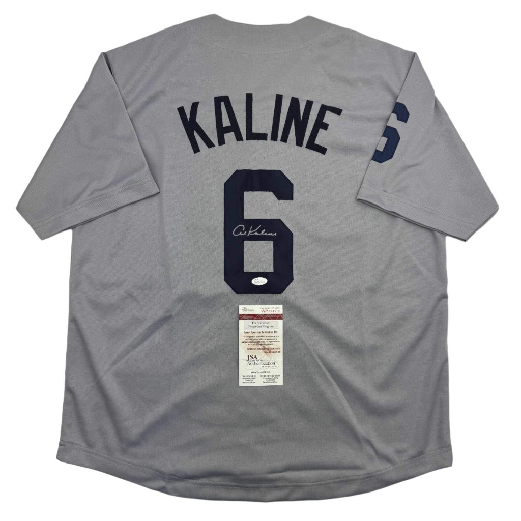 Autographed/Signed Al Kaline Detroit Grey Baseball Jersey JSA COA Jersey has no brand names or logos. This is a custom jersey and was not manufactured by or in any manner associated with any professional sports league or manufacturer. This custom jersey carries no professional sports league designation. The item is intended to be an autographed collectible. The custom jersey displays the name and number of the player. This item in no way is affiliated with or connected to any professional sports organization. Size is XL