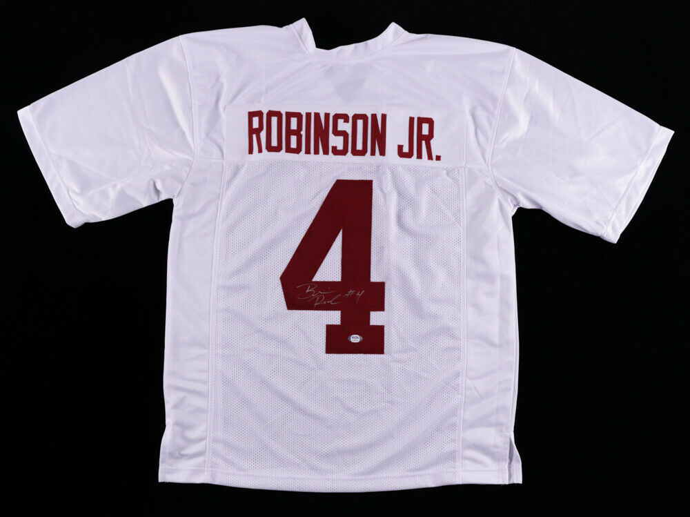 Custom on-field style jersey. Everything is sewn on, size XL. Hand-signed by Brian Robinson Jr.The lot / autograph(s) includes an official PSA/DNA hologram and matching COA for authenticity purposes.Authentication: PSA COA