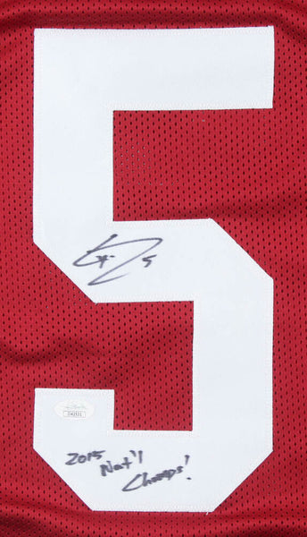 Custom on-field style jersey. Everything is sewn on, size XL. Hand-signed by Cyrus Jones. The autograph includes an official James Spence Authentication (JSA) hologram and matching COA for authenticity purposes. Authentication: JSA COA