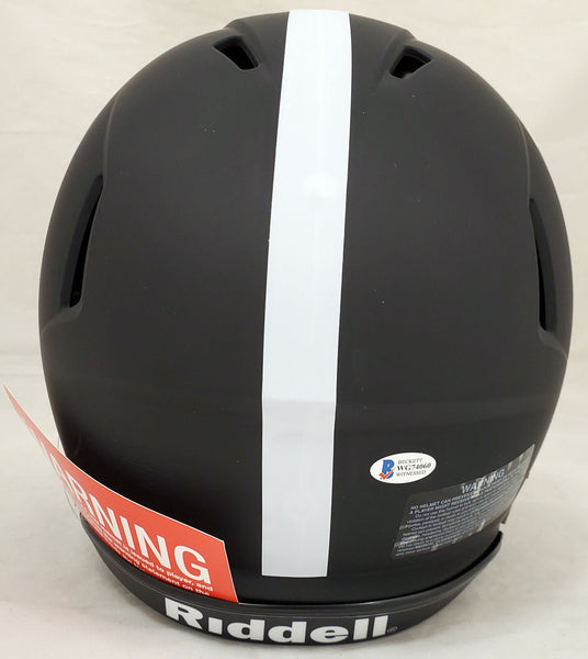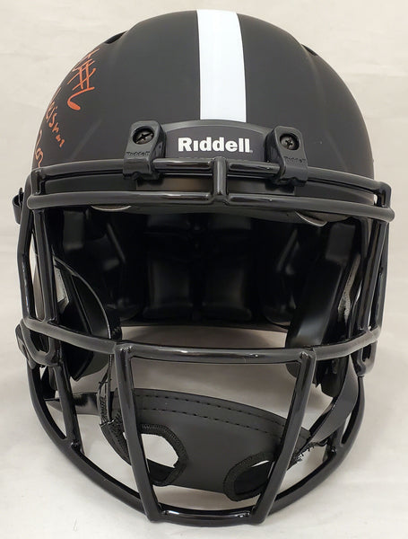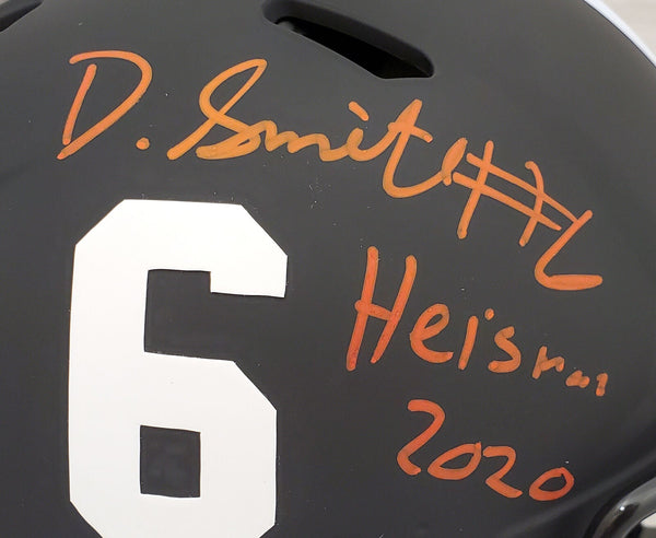 This is an Alabama Crimson Tide Eclipse Black Full Size Speed Authentic Helmet that has been hand signed by Devonte Smith. Smith inscribed this item "Heisman 2020." It has been certified authentic by Beckett Authentication (BAS) and comes with their sticker and matching certificate of authenticity. NOTE: The Eclipse Black helmets are very delicate and often have some marks or scratches on them.