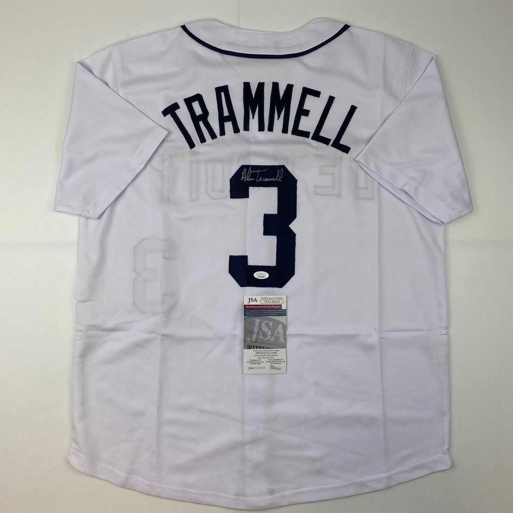 Autographed/Signed Alan Trammell Detroit White Baseball Jersey JSA COA
