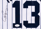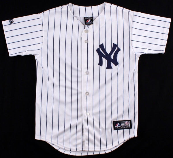 .Majestic on-field style jersey. Everything is sewn on, size Youth M. Hand-signed in black felt-tip pen by Alex Rodriguez.Alex Rodriguez (Mariners, Rangers, Yankees). During his 20-year career, Rodriguez has amassed a .297 batting average, 687 home runs, over 2000 runs batted in (RBI), over 2000 runs scored, and over 3,000 hits. He is a 14-time All-Star and has won three American League (AL) Most Valuable Player (MVP) Awards, ten Silver Slugger Awards, and two Gold Glove Awards. Rodriguez is the career record holder for grand slams with 25. The autograph includes an official James Spence Authentication (JSA) hologram and matching COA for authenticity purposes.Authentication: JSA COA