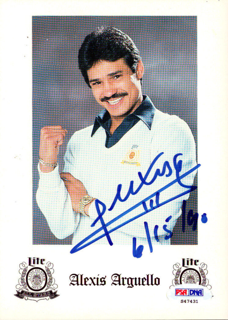 This is a 5x7 Advertisement that has been hand signed by Alexis Arguello. It has been certified authentic by PSA/DNA and comes with their sticker and matching certificate of authenticity.