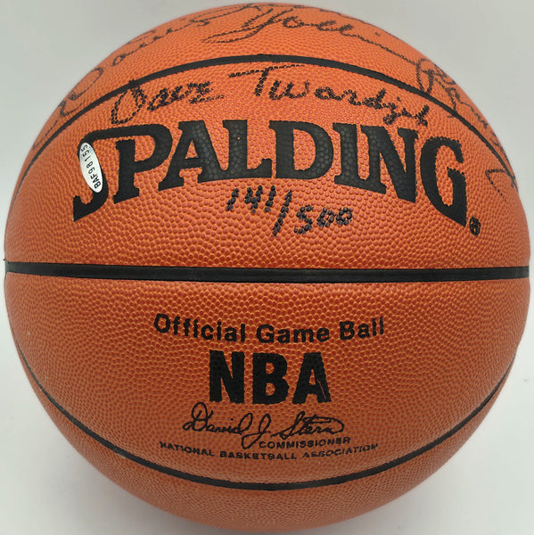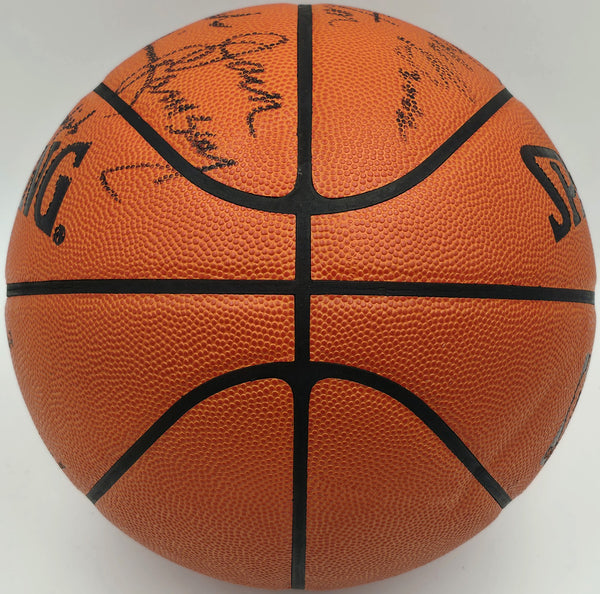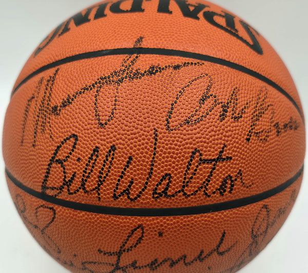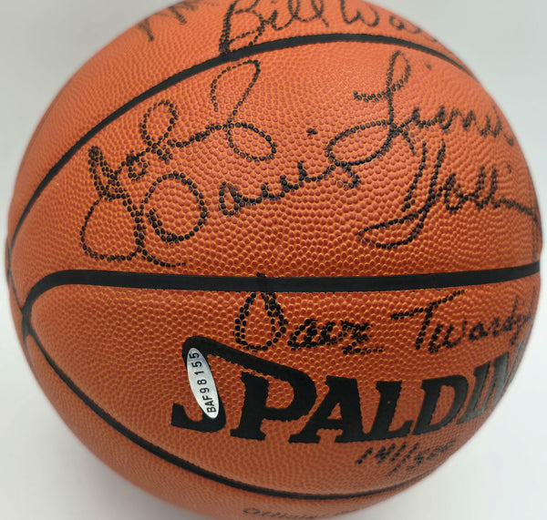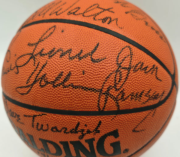 This is a Spalding NBA Game Leather Basketball that has been hand signed by 7 members of the 1976-77 Portland Trail Blazers Team. Signatures Include Bill Walton, Jack Ramsay, Lionel Hollins, Johnny Davis, Dave Twardzik, Bob Gross and Maurice Lucas. This item has been certified authentic by Upper Deck Authentication (UDA) and comes with their tamper-proof hologram BUT is missing the matching certificate of authenticity. This item has been certified authentic by Beckett Authentication (BAS) and comes with their tamper-proof hologram and matching full-page certificate of authenticity.