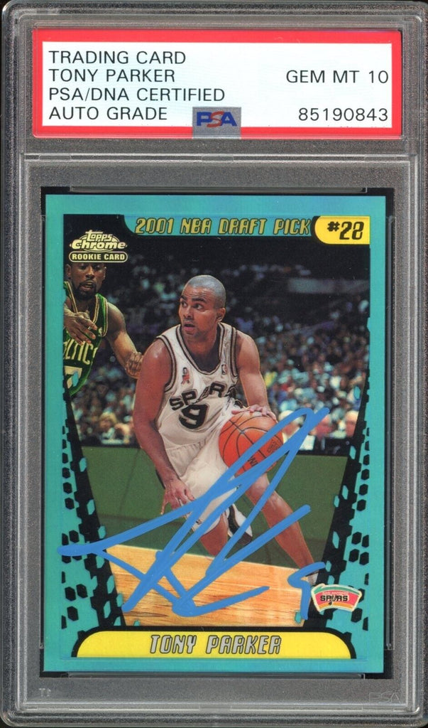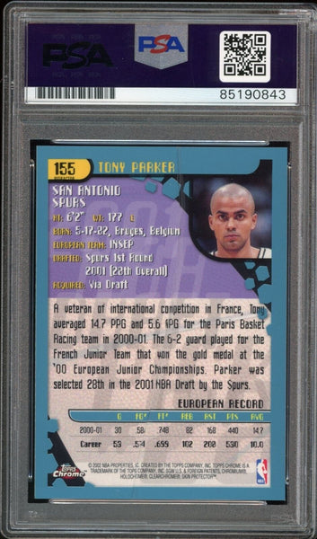 2001 Topps Chrome Refractor #155 Tony Parker RC On Card PSA/DNA Auto GEM MINT 10