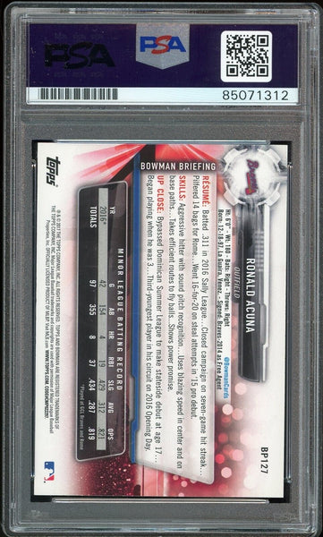2017 Bowman Prospects #BP127 Ronald Acuna Jr. RC Rookie PSA/DNA Auto GEM MINT 10