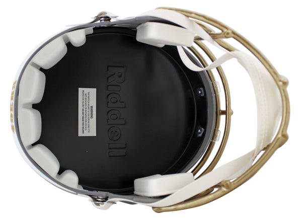 This Autographed Alternate Slate Riddell Full Size Speed Rep Helmet W/ Uv Mirrored Back Acrylic Display Case has been Personally Signed by Dre Greenlaw of the San Francisco 49ers. This item is 100% Authentic to include a hologram by Beckett Authentication Services. This item will come with an affixed Beckett Authentication Services (BAS) authentication sticker, which includes a scannable QR code to verify authenticity. Please note that Beckett no longer provides serial-numbered COA cards, and the attached BAS sticker will serve as the complete authentication for this item. This is a BAS Witnessed Protection Program item which means a Beckett Authentication Service representative was present when this item was being signed. We conducted an autograph signing with Dre Greenlaw where multiples of the same item were signed. While the photographs are representative of this item, the size, placement and strength of the signature may vary. Each item is hand signed, therefore, each autograph is unique. This item can be verified through BAS Witnessed.