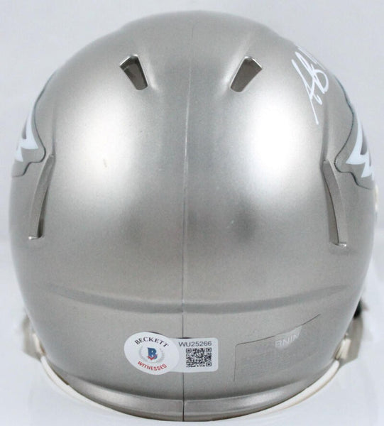 AJ Brown Autographed Philadelphia Eagles Flash Speed Mini Helmet-Beckett W Hologram *White This is a hand autograph of AJ Brown of the Philadelphia Eagles on a Riddell Football Flash Speed Mini Helmet. This item has a Beckett Witness Authentication, which comes with a Beckett numbered hologram and a QR code for verification. You can view this item on the Beckett website and it shows when and where the item was signed. It was signed either at a public autograph appearance or a private signing. This is a stock photo of the item. Although you may not receive this exact item, the item you receive is virtually identical and brand new in great shape.