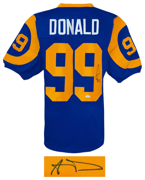 Aaron Donald Signed Blue Throwback Custom Football Jersey - (JSA COA)