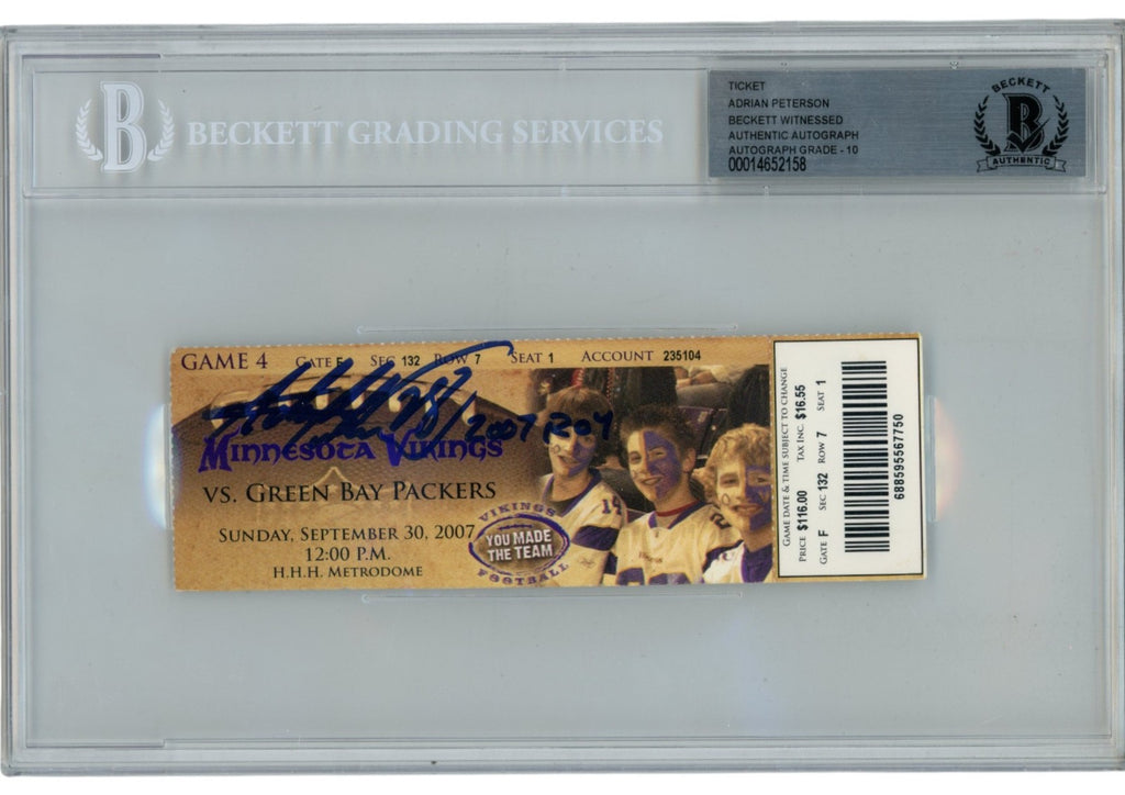 Adrian Peterson Autographed Minnesota Vikings 07ROY Slabbed Ticket Beckett 36362