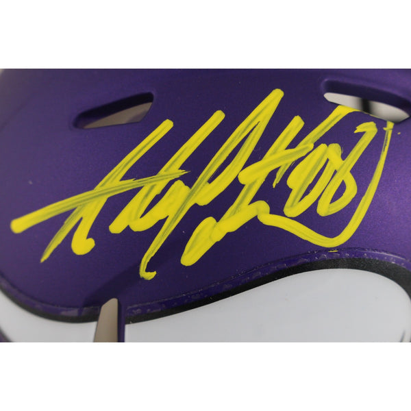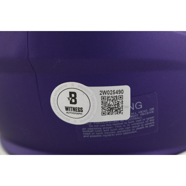 The number in the listing title is just an inventory sku for our records and is not the authentication number. This is a stock photo, unless otherwise noted. This is a Minnesota Vikings Speed Mini Helmet that was personally autographed by Adrian Peterson. Includes a certificate of authenticity from Beckett Authentication Services (BAS) and Denver Autographs.FREE SHIPPING within the USA on orders over $10!