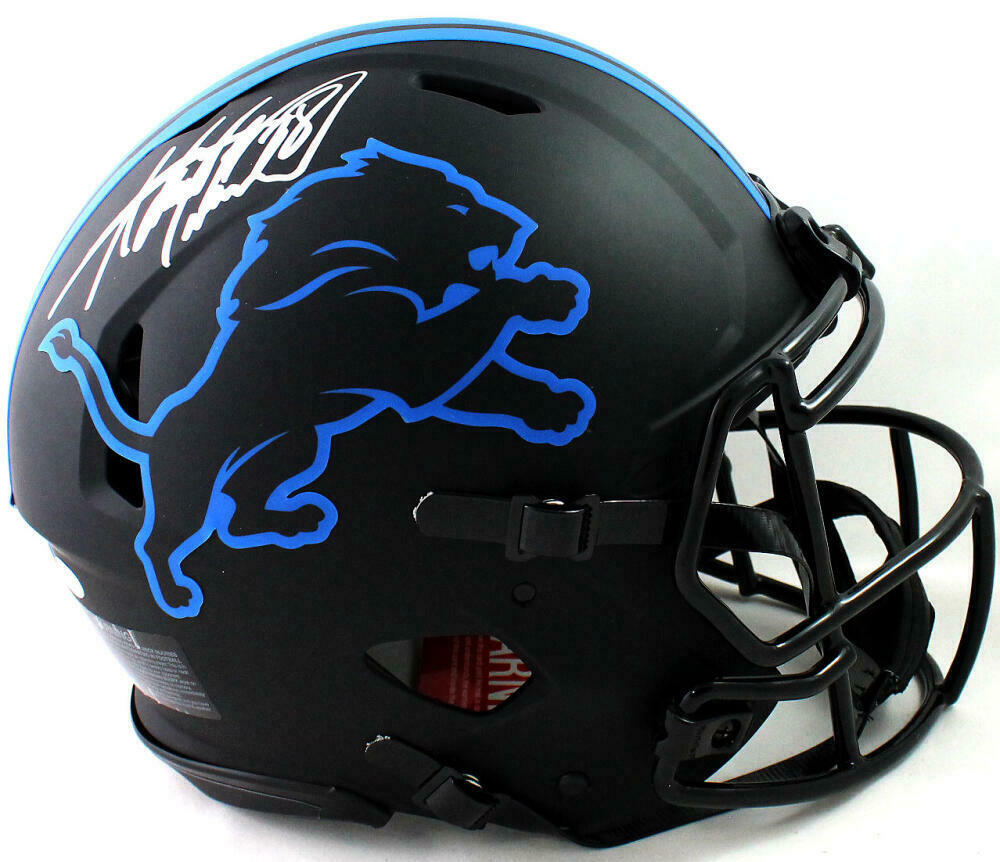 Adrian Peterson Autographed Detroit Lions F/S Eclipse Speed Authentic Helmet- Beckett W *Silver This is a hand autograph of Adrian Peterson of the Detroit Lions on a Riddell Football Full Size Eclipse Speed Authentic Helmet. This item has a Beckett Witnessed Authentication, which comes with a numbered and a matching Beckett Certificate of Authenticity. You can view this item on the Beckett Authentication website. It was signed either at a public autograph appearance or a private signing. This is a stock photo of the item. Although you may not receive this exact item, the item you receive is virtually identical and brand new in great shape.