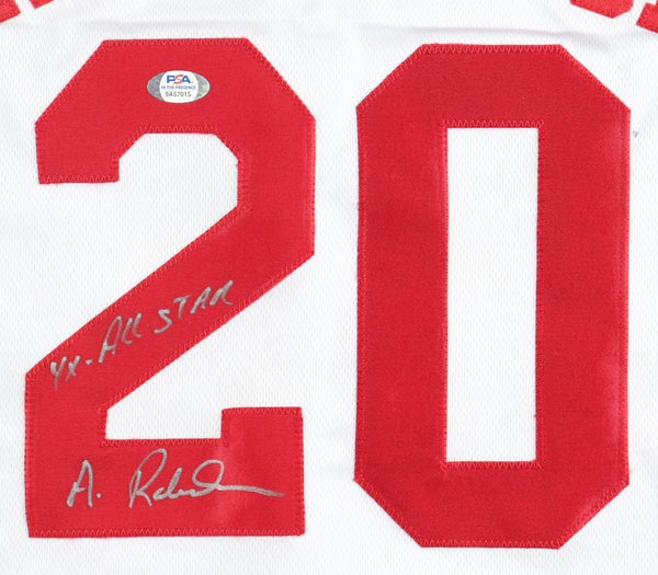 Custom on-court All Star game style jersey with everything sewn on, size XL. Has been hand-signed by Alvin Robertson.The autograph includes an official PSA/DNA hologram and Scannable QR code card for authenticity purposes. The signing of this item was witnessed by PSA.Authentication: PSA Hologram with Scannable QR Code cardCustom on-field style jerseys are a more affordable option for autograph seekers. These jerseys do not have any brand name or tags and are made in the Philippines. They feature stitched on names and numbers and are made to look very similar to the on-field jerseys that the players wear. These custom jerseys are very commonly used in the memorabilia industry.Shop our ebay store / Friendly Confines Collectibles for thousands of different autographed jerseys