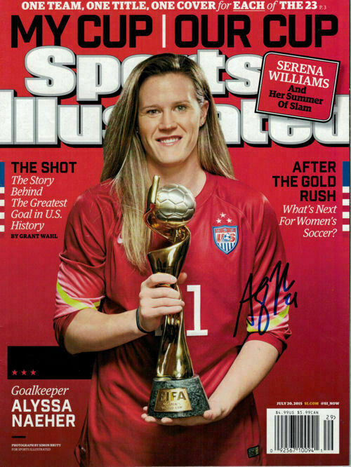 Alyssa Naeher Autographed USA Soccer 2015 Sports Illustrated World Cup 15525 This is a July 30, 2015 Sports Illustrated that has been personally signed by Alyssa Naeher. Alyssa is a goalie for the USA women's national soccer team, while a member of this team she has won a 2015 World Cup Winner. This item includes a certificate of authenticity from Denver Autographs.