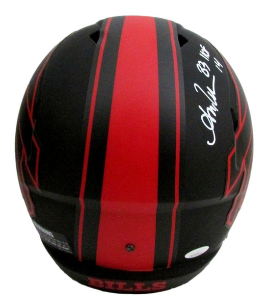 Andre reed hof buffalo bills signed/inscribed "hof 14" full size black eclipse replica football helmet. this helmet is authenticated by jsa and includes their tamper-proof sticker and certificate of authenticity.