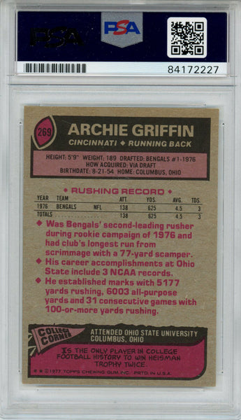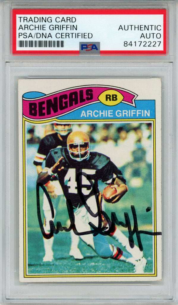 Archie Griffin Autographed/Signed 1977 Topps #269 Trading Card PSA Slab 43706 The number in the listing title is just an inventory sku for our records and is not the authentication number. This is the exact item that you will receive so please see pictures for condition. This is a trading card that was personally autographed by Archie Griffin. This has been professionally slabbed by Professional Authentication Services (PSA) and includes a certificate of authenticity from Denver Autographs.