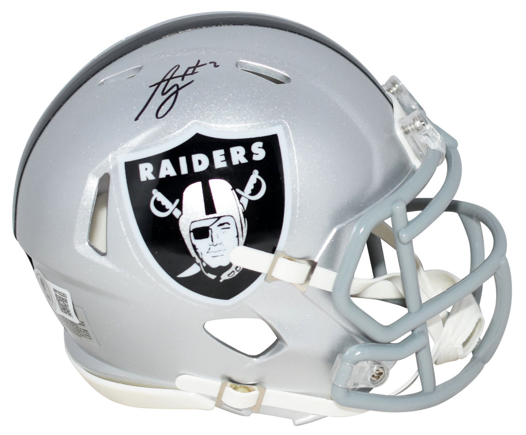 Ashton Jeanty, star running back for the Las Vegas Raiders, has hand signed this Raiders Riddell Speed mini helmet at a private signing. This item is authenticated by Beckett Authentication Services and was signed in the presence of one of their representatives. Their tamper-evident hologram featuring a QR code and serial number is on the item. The authenticity can be verified online by entering the serial number or scanning the QR code.Item pictured may not be the exact item you will receive. It will be similar quality, and we guarantee your satisfaction.