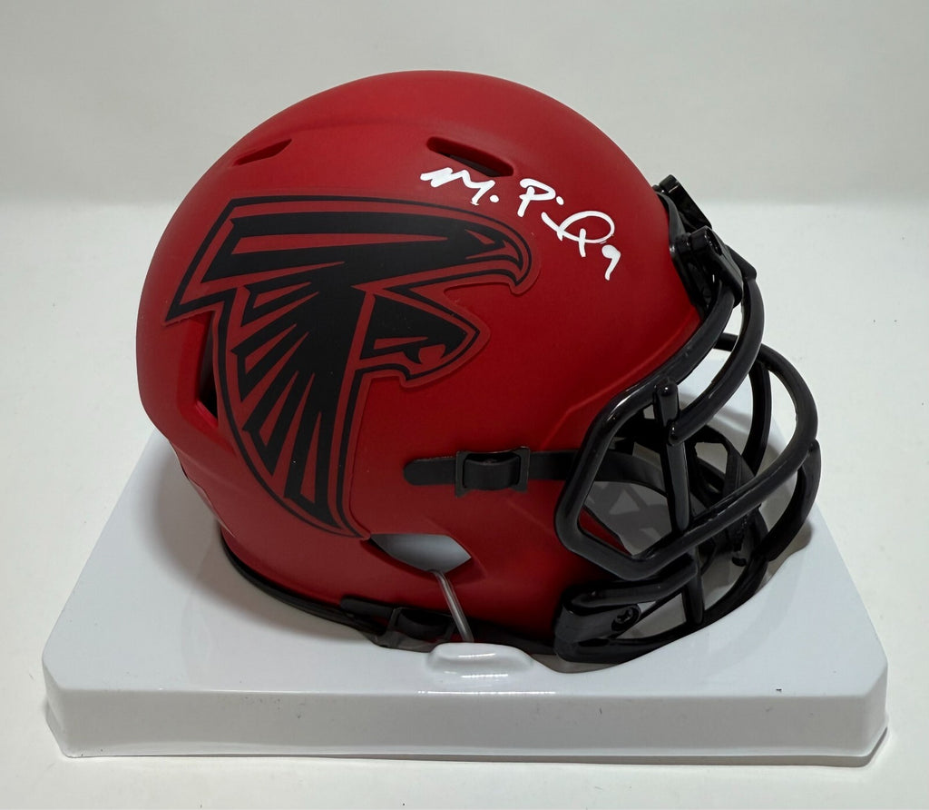 Riddell Rave Mini Helmet hand signed by Atlanta Falcons Quarterback MICHAEL PENIX JR. The signature is in White paint pen. This item would make a great addition to any Falcons collection! This autograph is guaranteed to be 100% authentic and will include a COA hologram from Beckett authentication.