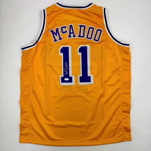 Autographed/Signed Bob McAdoo Los Angeles Yellow Basketball Jersey JSA COA Jersey has no brand names or logos. This is a custom jersey and was not manufactured by or in any manner associated with any professional sports league or manufacturer. This custom jersey carries no professional sports league designation. The item is intended to be an autographed collectible. The custom jersey displays the name and number of the player. This item in no way is affiliated with or connected to any professional sports organization. Size is XL.