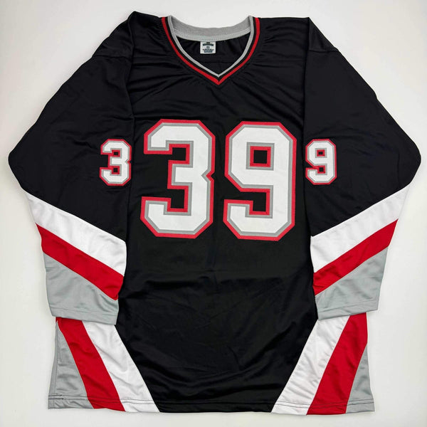 Autographed/Signed Dominik Hasek Buffalo Black Hockey Jersey Beckett BAS COA Jersey has no brand names or logos. This is a custom jersey and was not manufactured by or in any manner associated with any professional sports league or manufacturer. This custom jersey carries no professional sports league designation. The item is intended to be an autographed collectible. The custom jersey displays the name and number of the player. This item in no way is affiliated with or connected to any professional sports organization. Size is XL
