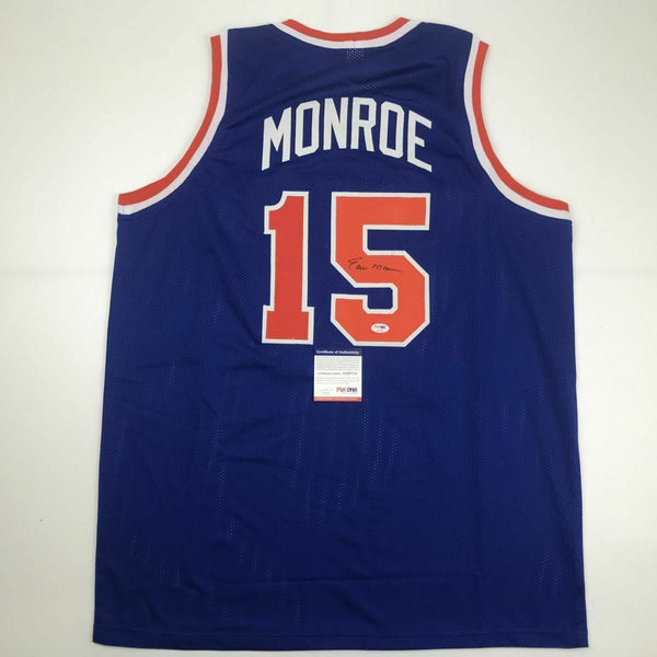 Autographed/Signed EARL MONROE New York Blue Basketball Jersey PSA/DNA COA Auto This is a custom jersey and was not manufactured by or in any manner associated with any professional sports league or manufacturer. This custom jersey carries no professional sports league designation. The item is intended to be an autographed collectible. Reference of team in the title is to allow the purchaser a point of association. The custom jersey displays the name, number and authenticated signature of the player. This item in no way is affiliated with or connected to any professional sports organization. The autograph, as always is guaranteed to be authentic and has been certified as authentic by a third-party, trusted authenticator. Size is XL unless otherwise noted.