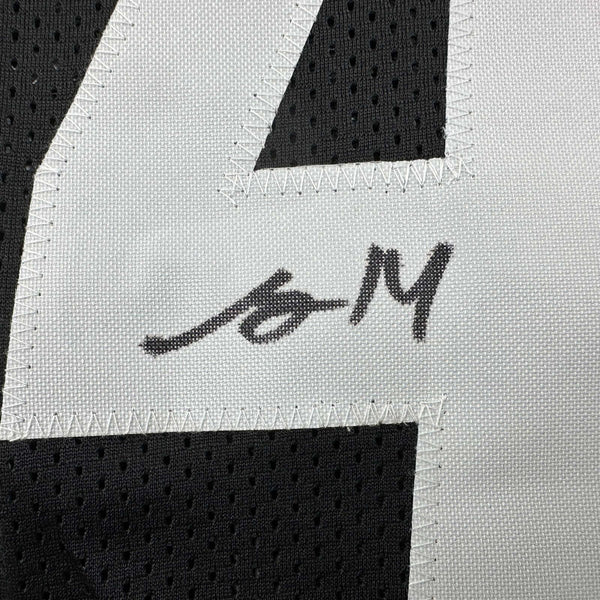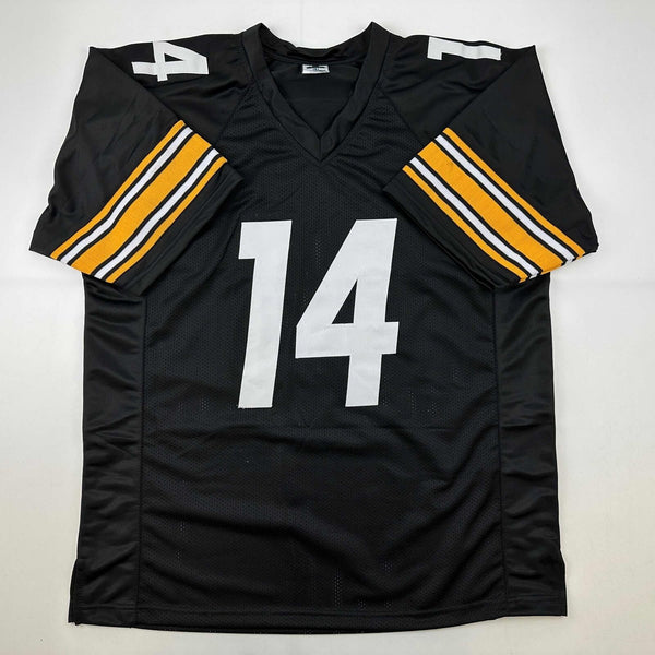Autographed/Signed George Pickens Pittsburgh Black Football Jersey JSA COA Jersey has no brand names or logos. This is a custom jersey and was not manufactured by or in any manner associated with any professional sports league or manufacturer. This custom jersey carries no professional sports league designation. The item is intended to be an autographed collectible. The custom jersey displays the name and number of the player. This item in no way is affiliated with or connected to any professional sports organization. Size is XL.
