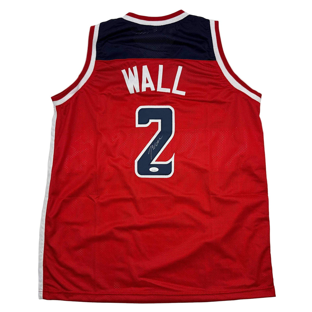 Autographed/Signed John Wall Washington Red Basketball Jersey JSA COA Jersey has no brand names or logos. This is a custom jersey and was not manufactured by or in any manner associated with any professional sports league or manufacturer. This custom jersey carries no professional sports league designation. The item is intended to be an autographed collectible. The custom jersey displays the name and number of the player. This item in no way is affiliated with or connected to any professional sports organization. Size is XL.