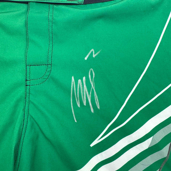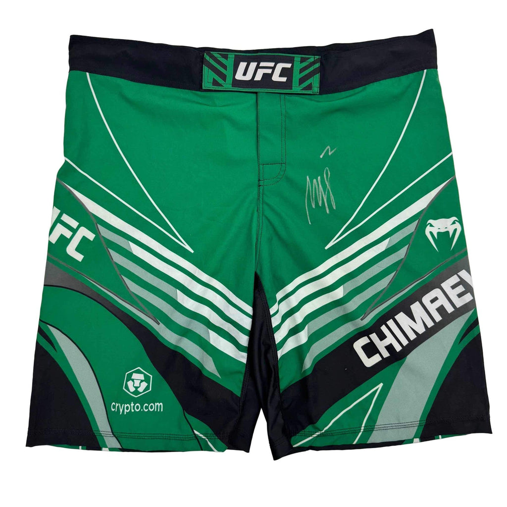 Autographed/Signed Khamzat Borz Chimaev Venom UFC MMA Green Trunks PSA/DNA COA Authentic and comes with third party authentication.